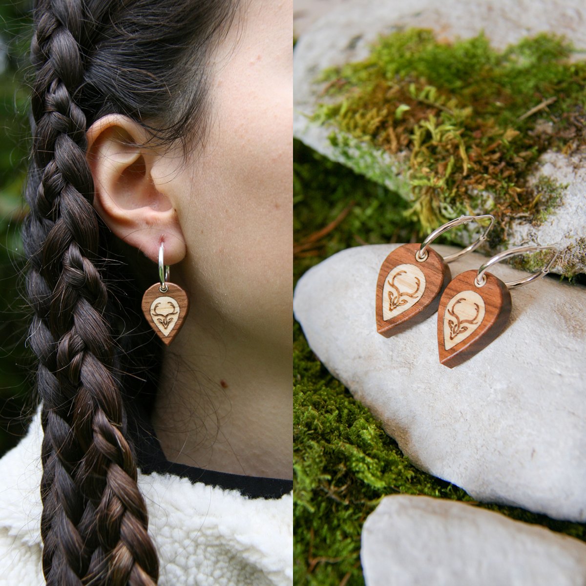 Gli orecchini della collezione Essentia sono realizzati in legno di 4 essenze diverse: frassino, il legno più chiaro, noce, larice termo-trattato e ciliegio. Questi legni provengono dalle montagne del mio paese, San Lorenzo Dorsino, e sono stati tagliati da mio nonno molti anni fa. Ogni pezzo racconta una storia di legame con la natura e la tradizione.