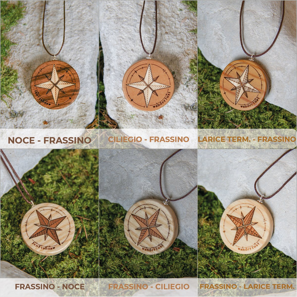 Le collane della collezione Essentia sono realizzati in legno di 4 essenze diverse: frassino, il legno più chiaro, noce, larice termo-trattato e ciliegio. Questi legni provengono dalle montagne del mio paese, San Lorenzo Dorsino, e sono stati tagliati da mio nonno molti anni fa. Ogni pezzo racconta una storia di legame con la natura e la tradizione.