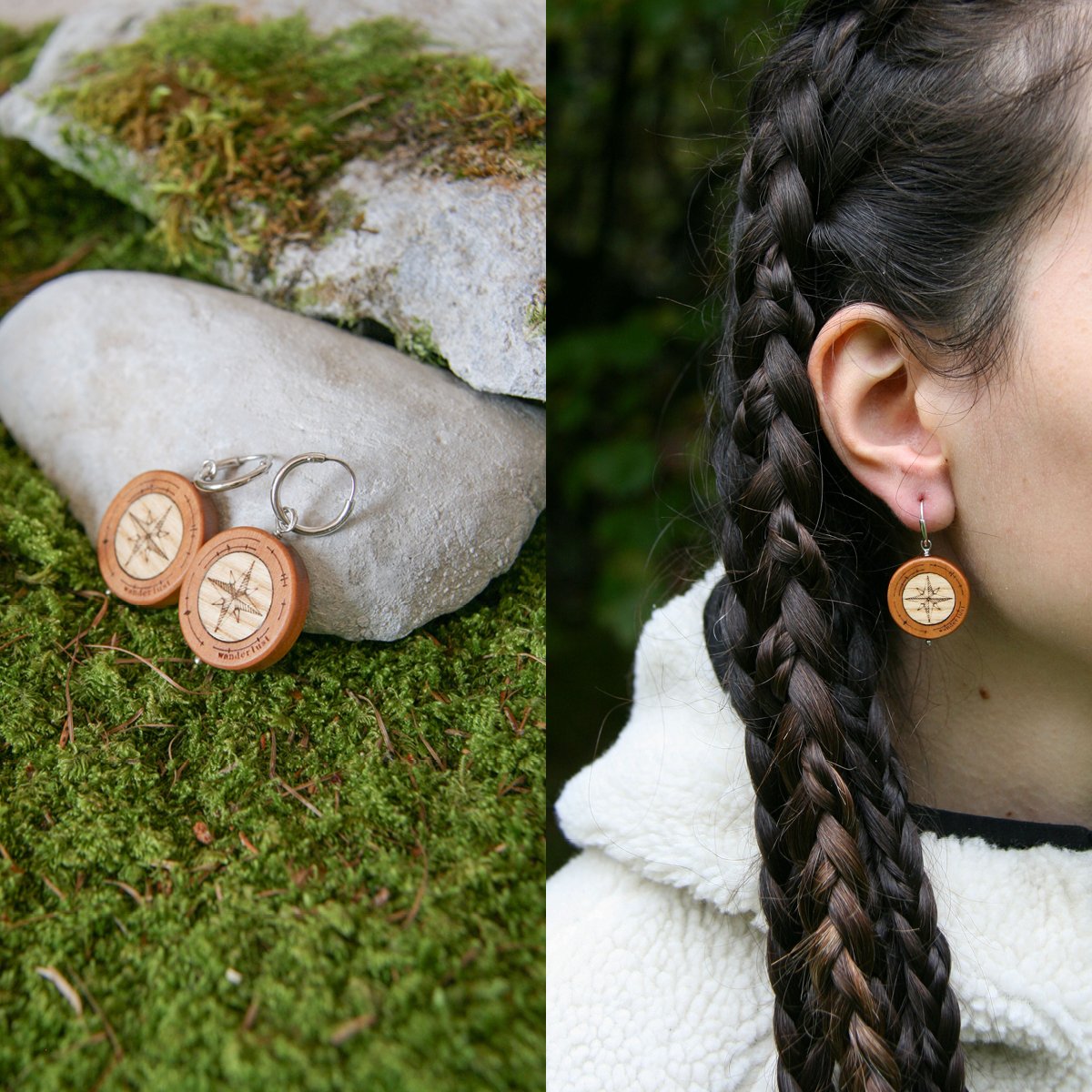 Gli orecchini della collezione Essentia sono realizzati in legno di 4 essenze diverse: frassino, il legno più chiaro, noce, larice termo-trattato e ciliegio. Questi legni provengono dalle montagne del mio paese, San Lorenzo Dorsino, e sono stati tagliati da mio nonno molti anni fa. Ogni pezzo racconta una storia di legame con la natura e la tradizione.